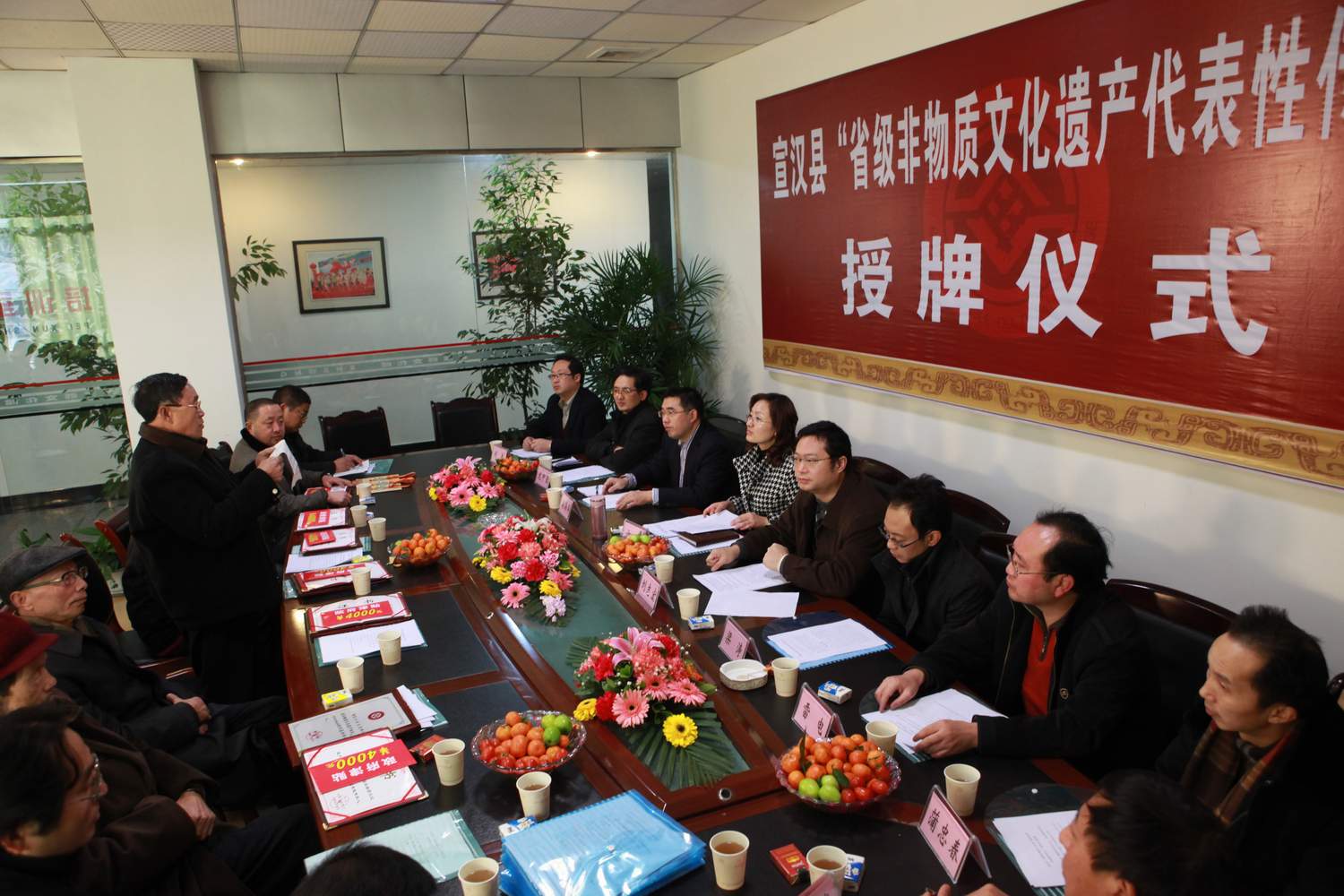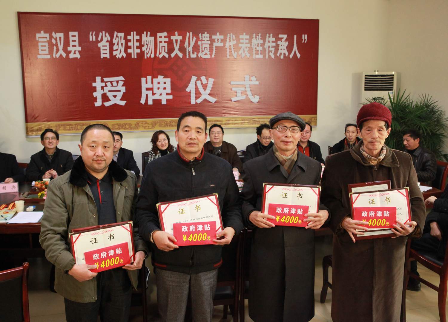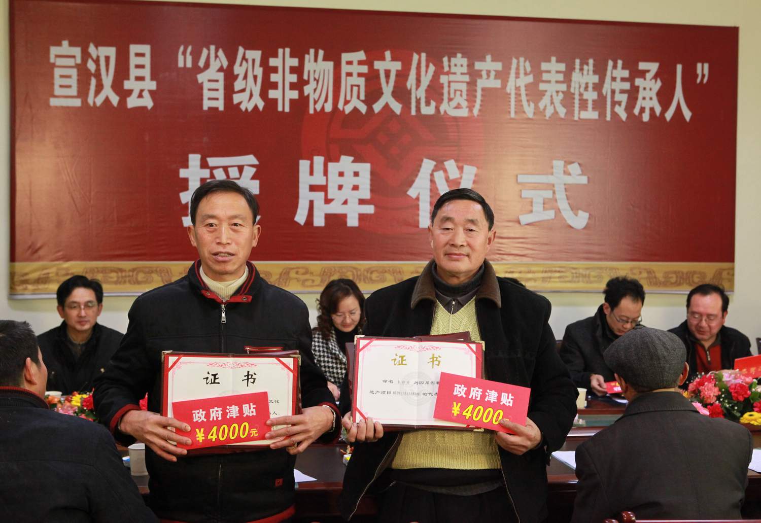 2010年12月28日,宣汉县“省级非物质文化遗产”代表性传承人授牌仪式在宣汉县文化馆隆重举行,发放了传承人政府津贴。县政府副县长方勤作了重要讲话,对我县“非遗”保护工作所取得的成绩作了充分肯定,并要求进一步加强我县非物质文化遗产保护工作。 此授牌仪式的举行,是省政府对我县非物质文化遗产保护工作的充分肯定,也是对我们县文化馆工作的充分肯定,更加坚定了我县从事“非遗”保护工作的信心。相信在县委、县政府的领导下,我县的非物质文化遗产保护工作必将跨上新台阶。