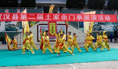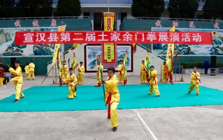 为了中华优秀传统文化有效的传承,宣传社会正能量,增强群众体质,提升新一代的集体荣誉感。2016年11月19日,宣汉县第二届土家余门拳展演活动在天台中心校举行,此次活动宣汉县文化馆的工作人员做了充分准备,也为活动的顺利进行提供了必要的保障,“土家余门拳”作为省级非物质文化遗产,吸引了大批武术爱好者前来参加此次展演活动。