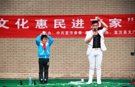 演出前,宣汉县文化馆的工作人员了解到文艺演出在土主中学举行,观众大多是学生,在节目形式和内容上做了相应的准备,由文化馆的演职人员带来的舞蹈《土家欢歌》为整场演出喜气开场,随后娄一丁老师演唱了《感恩》、《我是中国人》,舞蹈《巴山女儿心》、《大鱼》、《俏花旦》等节目都博得现场观众阵阵掌声,文化馆还特意安排了学生们喜欢的魔术,魔术还邀请了现场观众上台互动,使现场笑声、欢呼声不断。