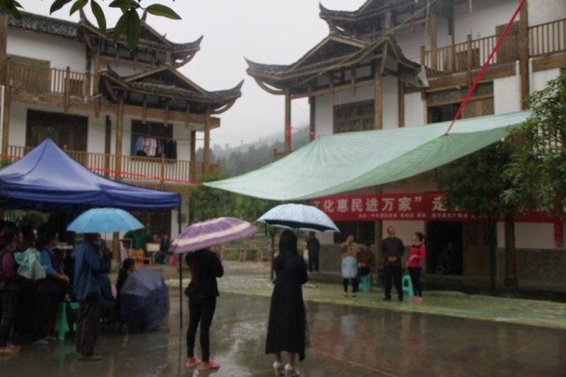 今天,高台这个美丽的乡村热闹非凡,文化馆演职人员在高台村的演出正酣,六月的天,就像孩儿脸,说变就变。一会儿就下起了倾盆大雨,但丝毫没有减轻观众观看的热情,他们打着雨伞看得乐哈哈,演职人员也是投入百分百的热情演出,伴随着雨声、歌声、笑声使整场演出圆满结束。今天的节目看得太过瘾了,原先在广州打工,现在和妻子返乡后生活越过越红火,在地里干完活还能看到如此精彩的文艺演出,我对我们未来的生活越来越有信心了。观看演出的村民徐小军这样说到。