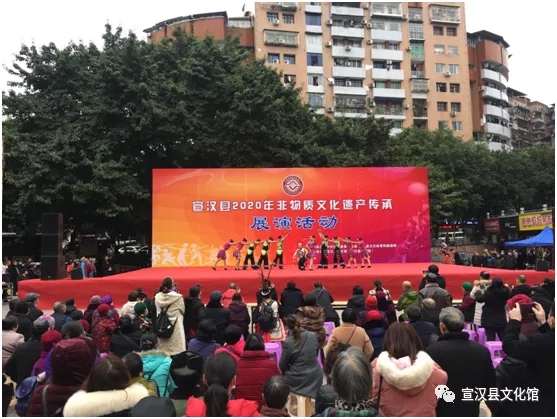 为深入贯彻落实习总书记关于传承弘扬中华优秀传统文化“创造性转化、创新性发展”指示精神,彰显我县非遗保护的新成果、新理念、新实践,让非遗走进千家万户,融入百姓生活。12月15日由中共宣汉县委宣传部、宣汉县文化体育和旅游局主办,宣汉县文化馆(宣汉县美术馆)承办的“2020非物质文化遗产传承展演活动”在东门广场隆重举行,活动吸引了成千上万的群众驻足观看。