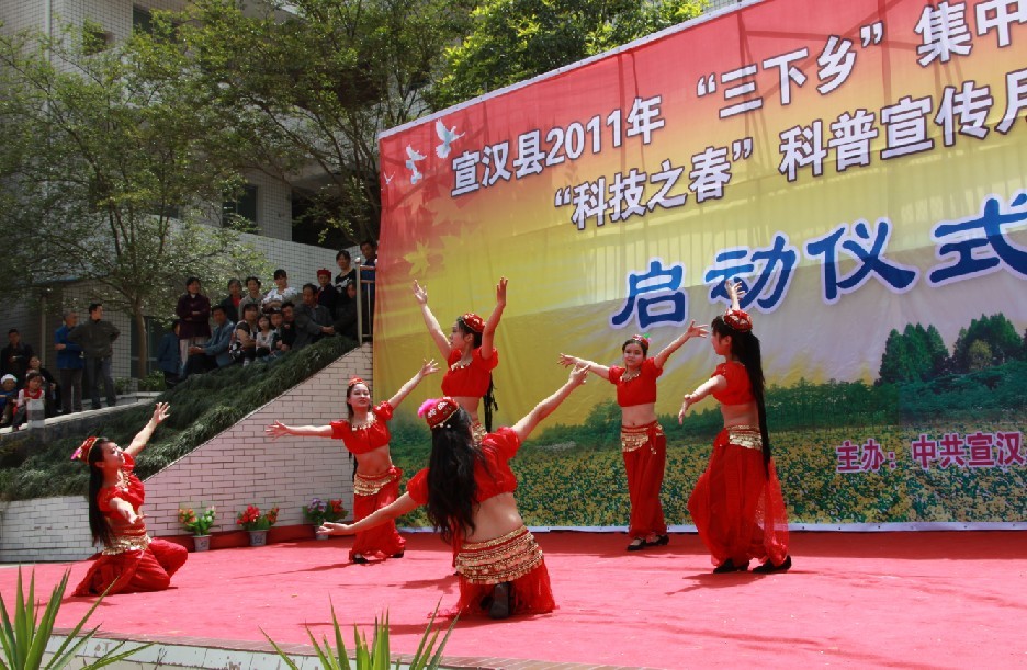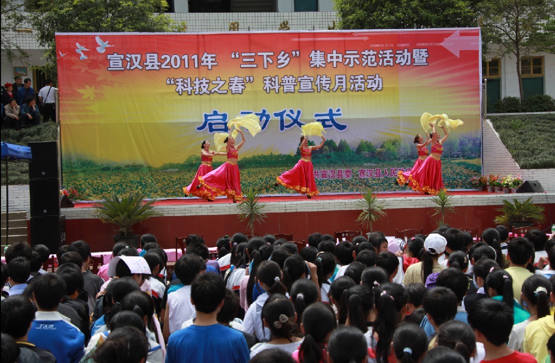 4月27日上午,宣汉县2011年“三下乡”集中示范活动暨“科技之春”科普宣传月活动启动仪式,在宣汉县黄金镇中心校隆重举办。拉开了我县2011年送文化下乡的序幕,由县文广局、县文化馆组织的一台精彩的文艺节目奉献给师生和广大群众。